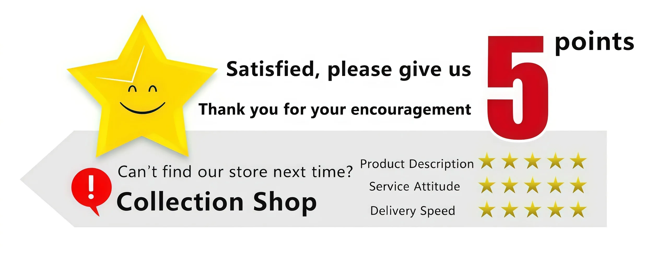 Please leave Feedback with 5 Stars if you are satisfied with our items and the services, If you have any problems with our items or services, please contact us first before you leave the negative feedback, We will do our best to solve the problem on time to make you happy. Thank you very much!