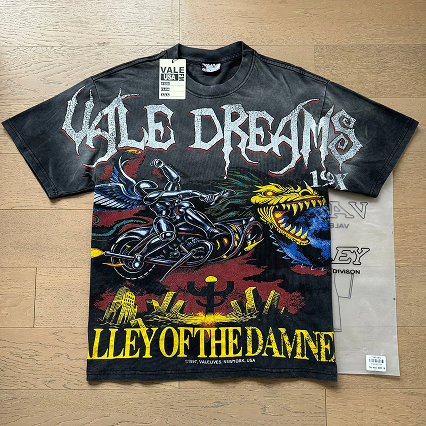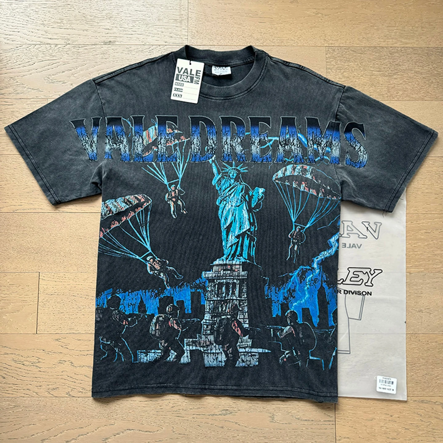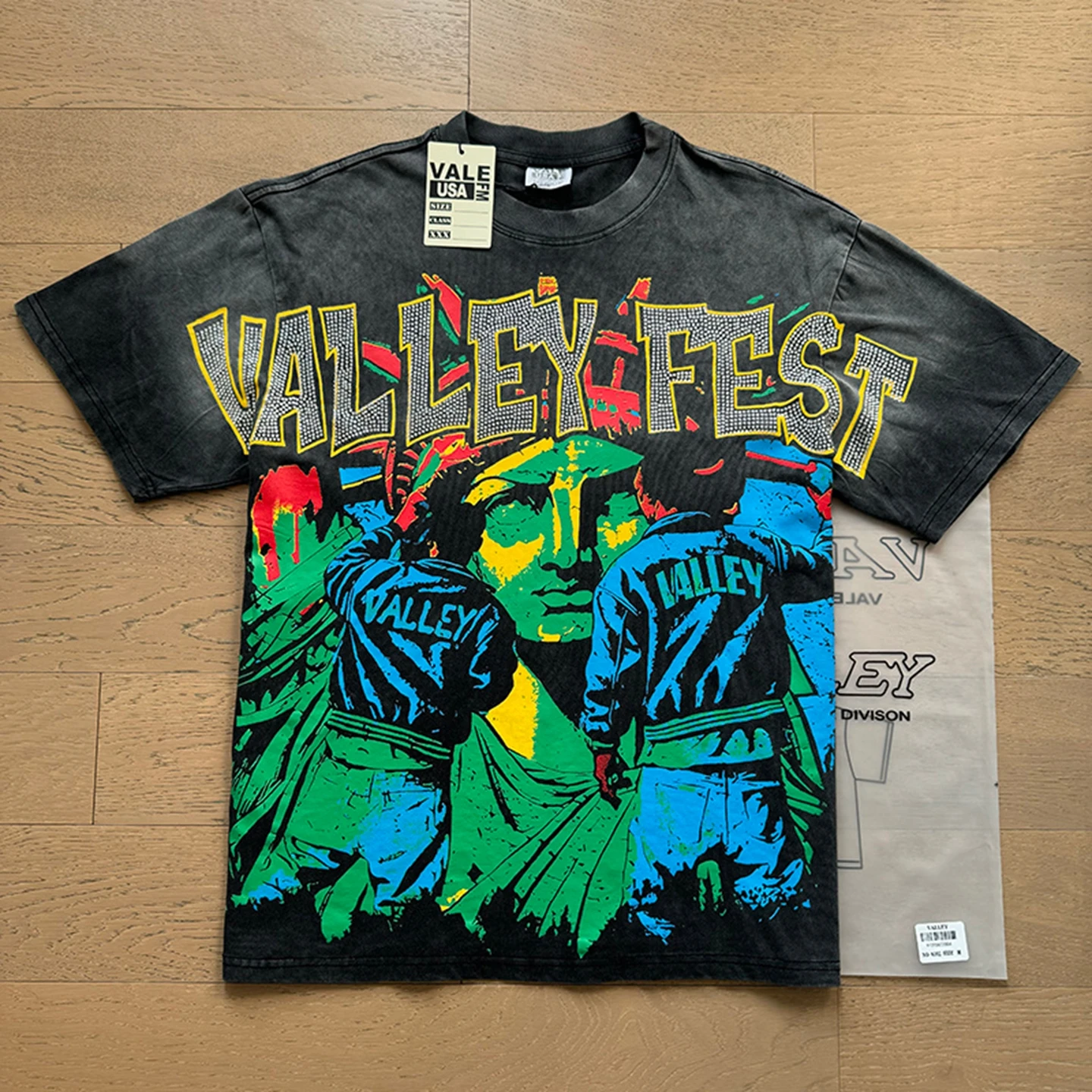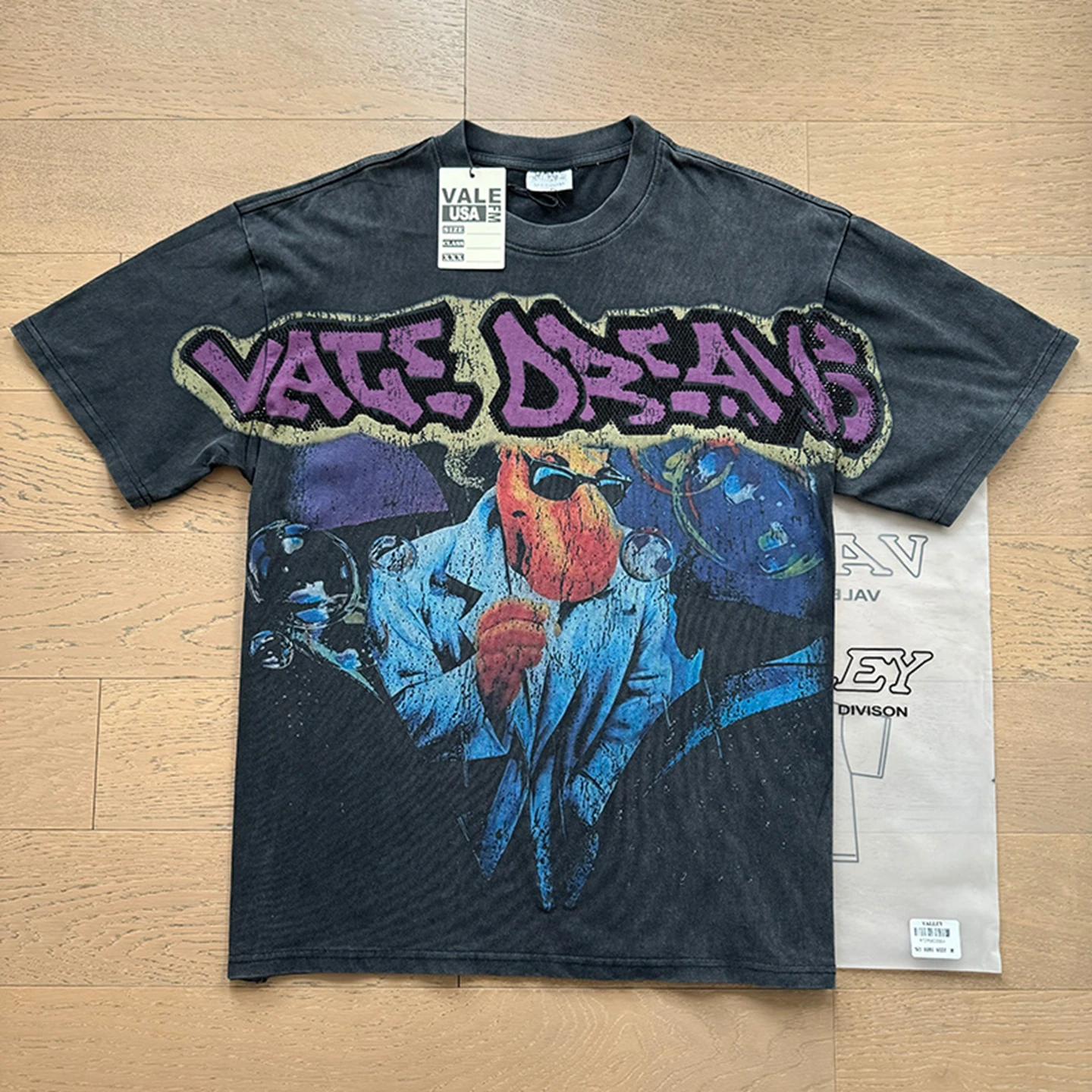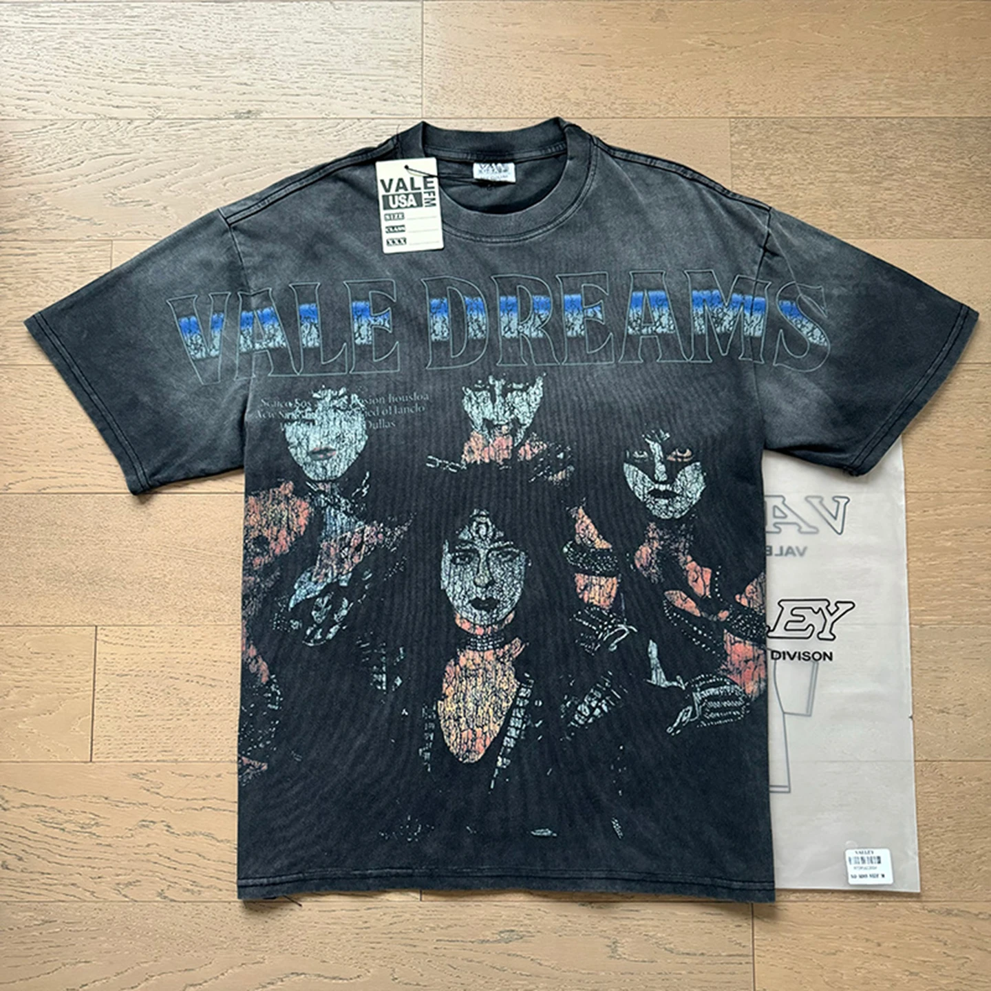 The Vale Forever T-shirt features a vintage washed design, giving it a unique aged look that’s perfect for streetwear enthusiasts.